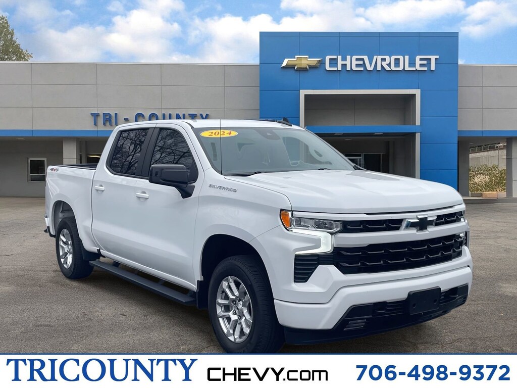 Clean CARFAX. Summit White 2024 Chevrolet Silverado 1500 RST 4WD 10-Speed Automatic EcoTec3 5.3L V8This 2024 Chevrolet Silverado 1500 has been through our complete 178 point inspection process and has been fully detailed. It features. 10-Speed Automatic, 4WD, Black Cloth.Recent Arrival!For a Great deal on this one or any vehicle at Tri County Chevrolet call our sales team at (706)245-7288. We have several banks willing to help all credit situations. We want to earn and keep your business!