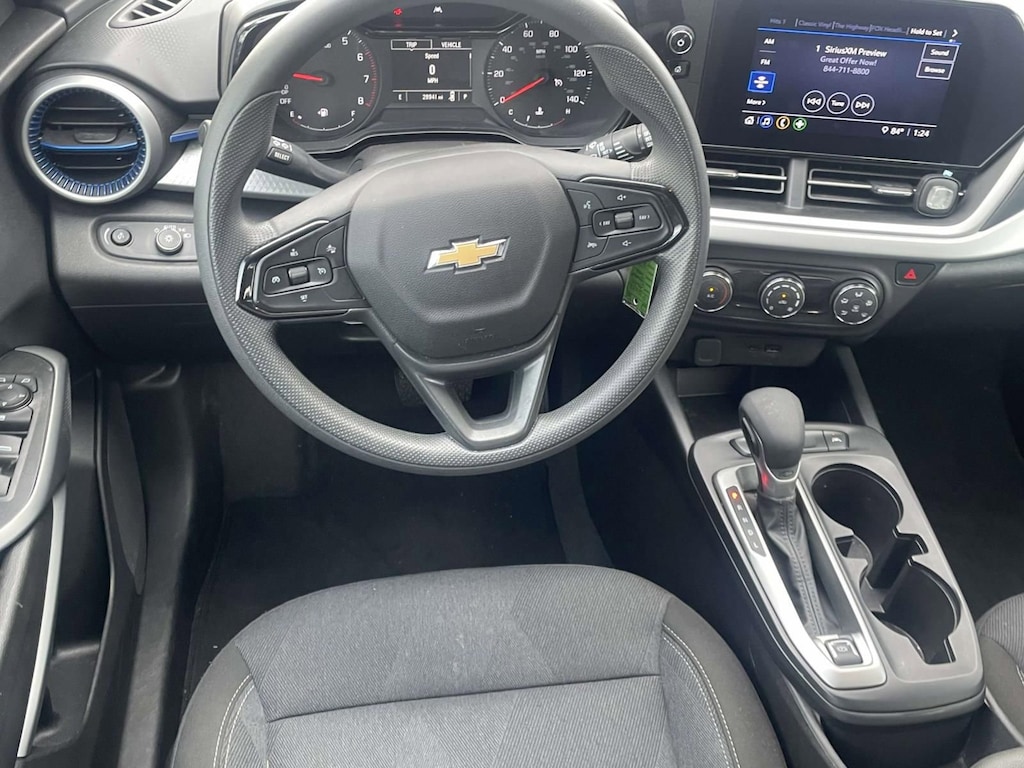 Step inside the Trax LS and discover a cabin that seamlessly blends style and functionality. The intuitive Chevrolet Infotainment 3 system with AM/FM radio and SiriusXM trial subscription keeps you connected and entertained, while the available steering wheel-mounted audio controls allow you to easily manage your music on the go.